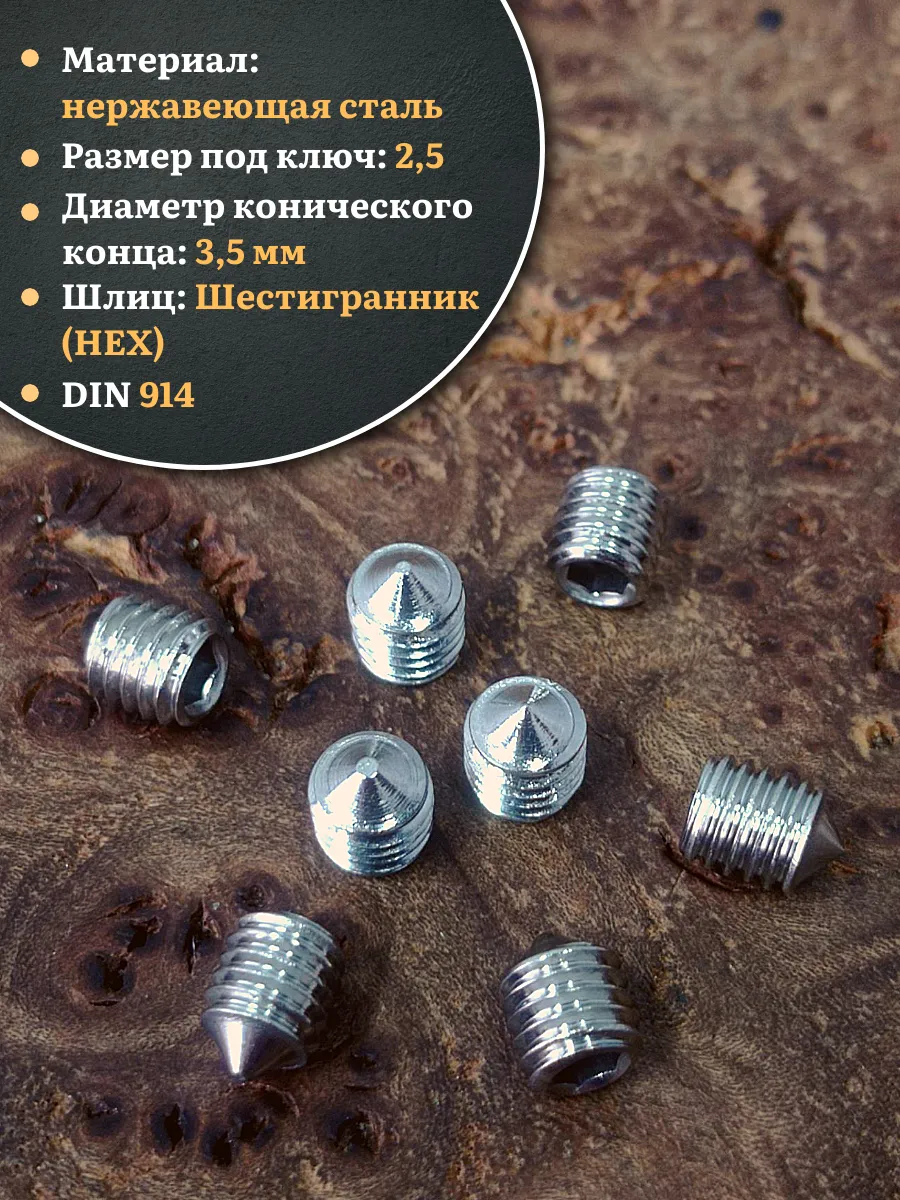 Винт установочный нержавеющий М5х6 DIN914 (гужон), 10 шт.