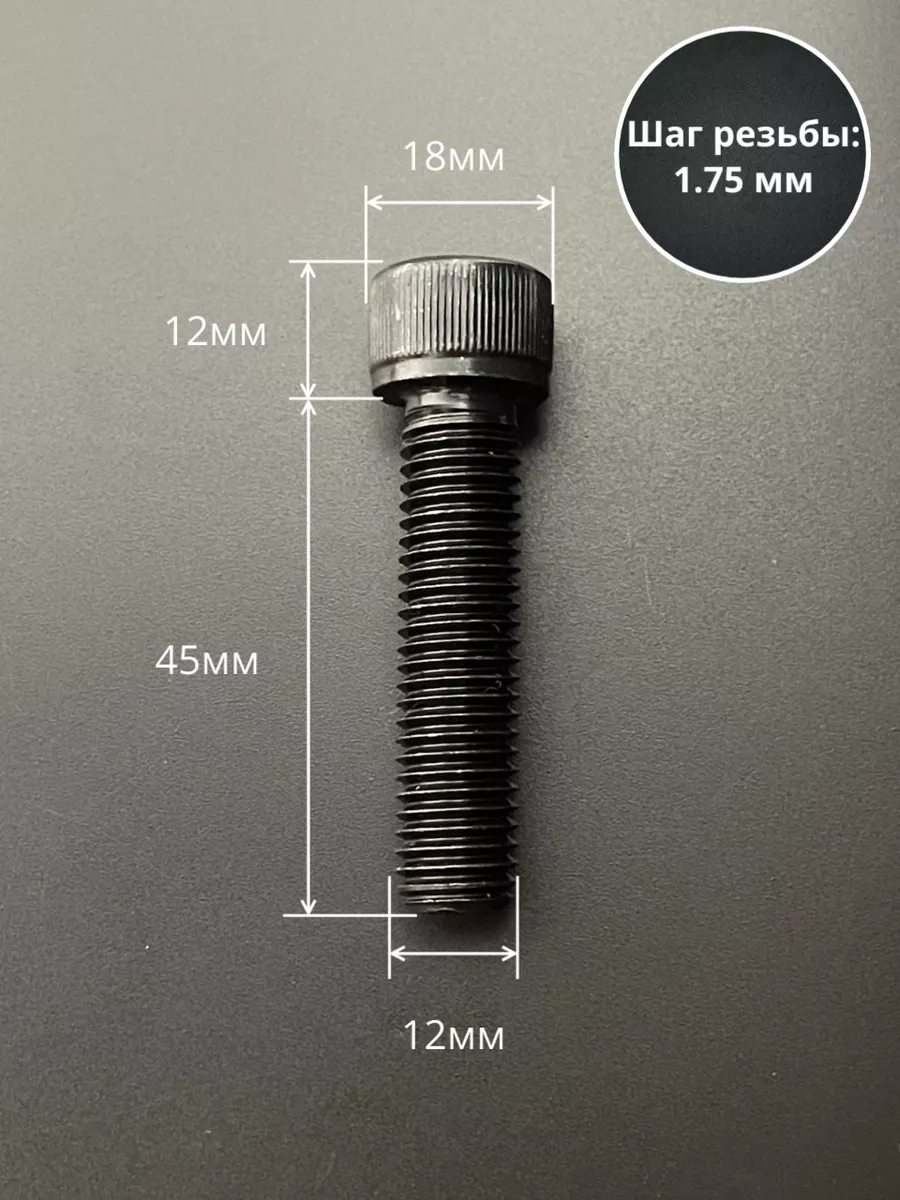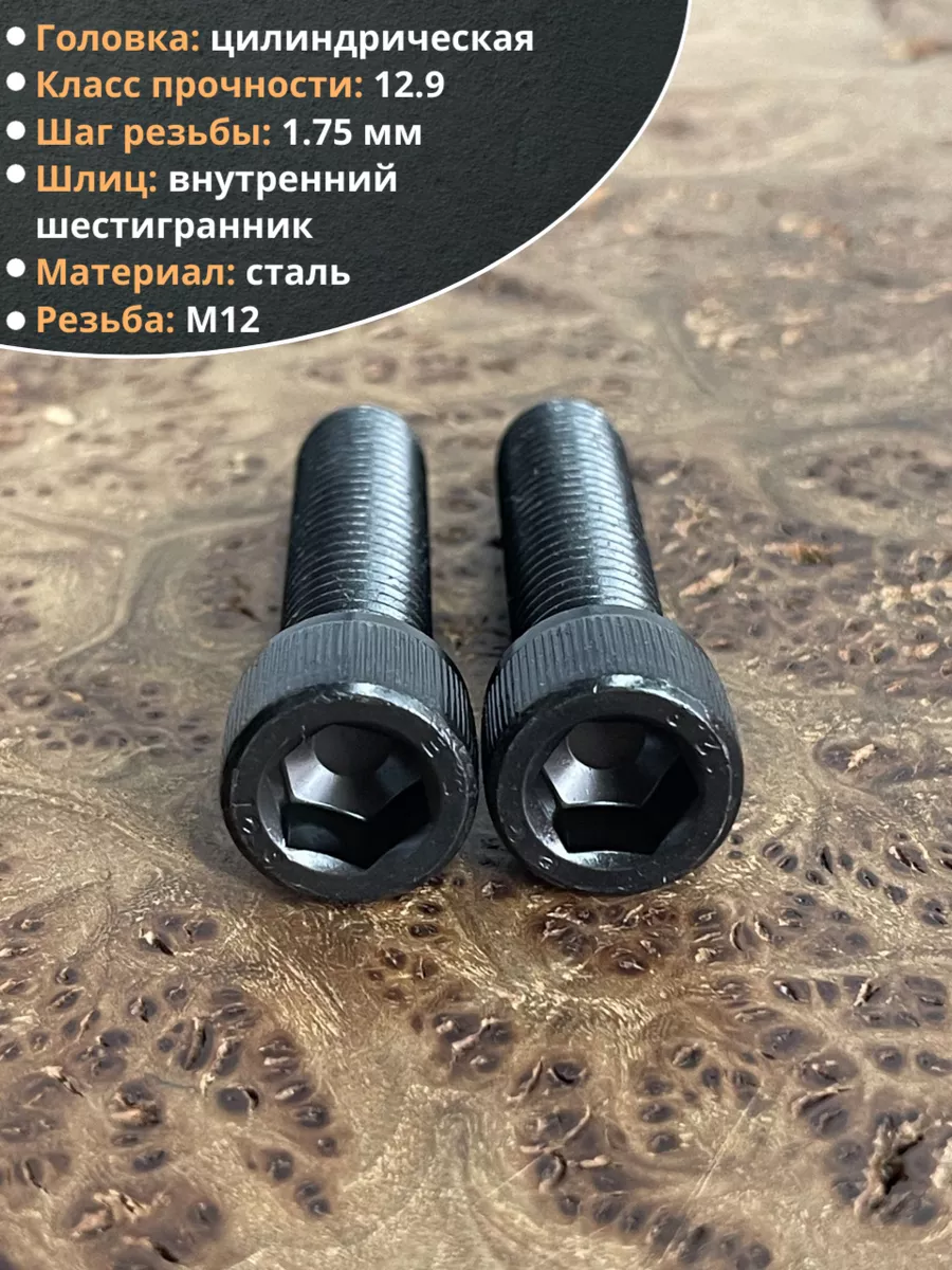 Винт высокопрочный ПР М12х45 мм к.п.12.9 черный DIN912, 2 шт.