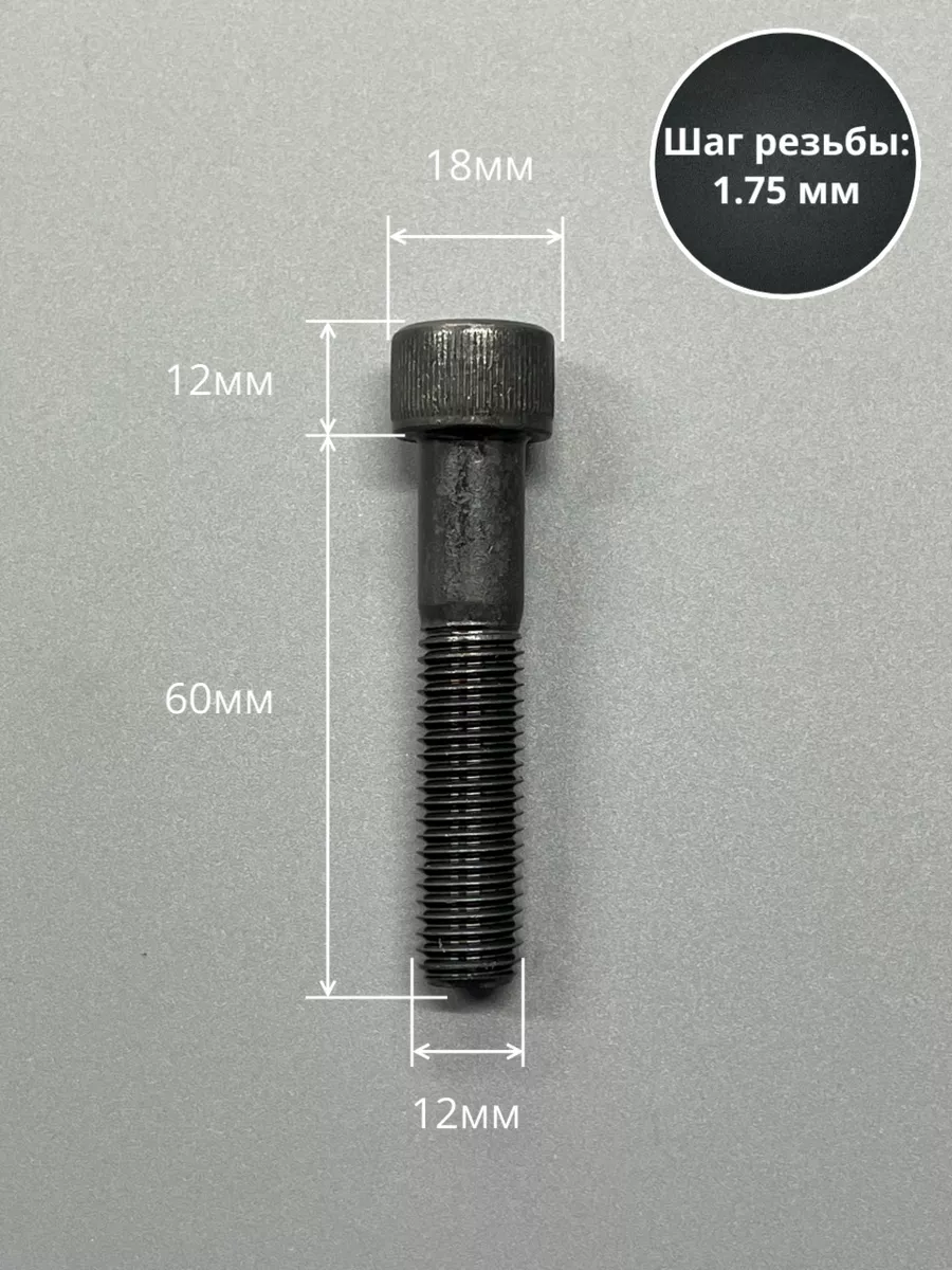 Винт высокопрочный НР М12х60 мм к.п.12.9 черный DIN912, 2 шт.
