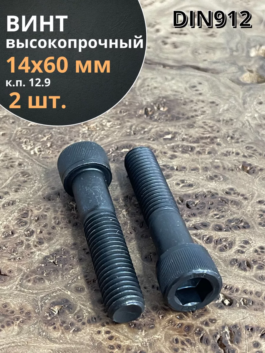 Винт высокопрочный НР М14х60 мм к.п.12.9 черный DIN912, 2 шт.