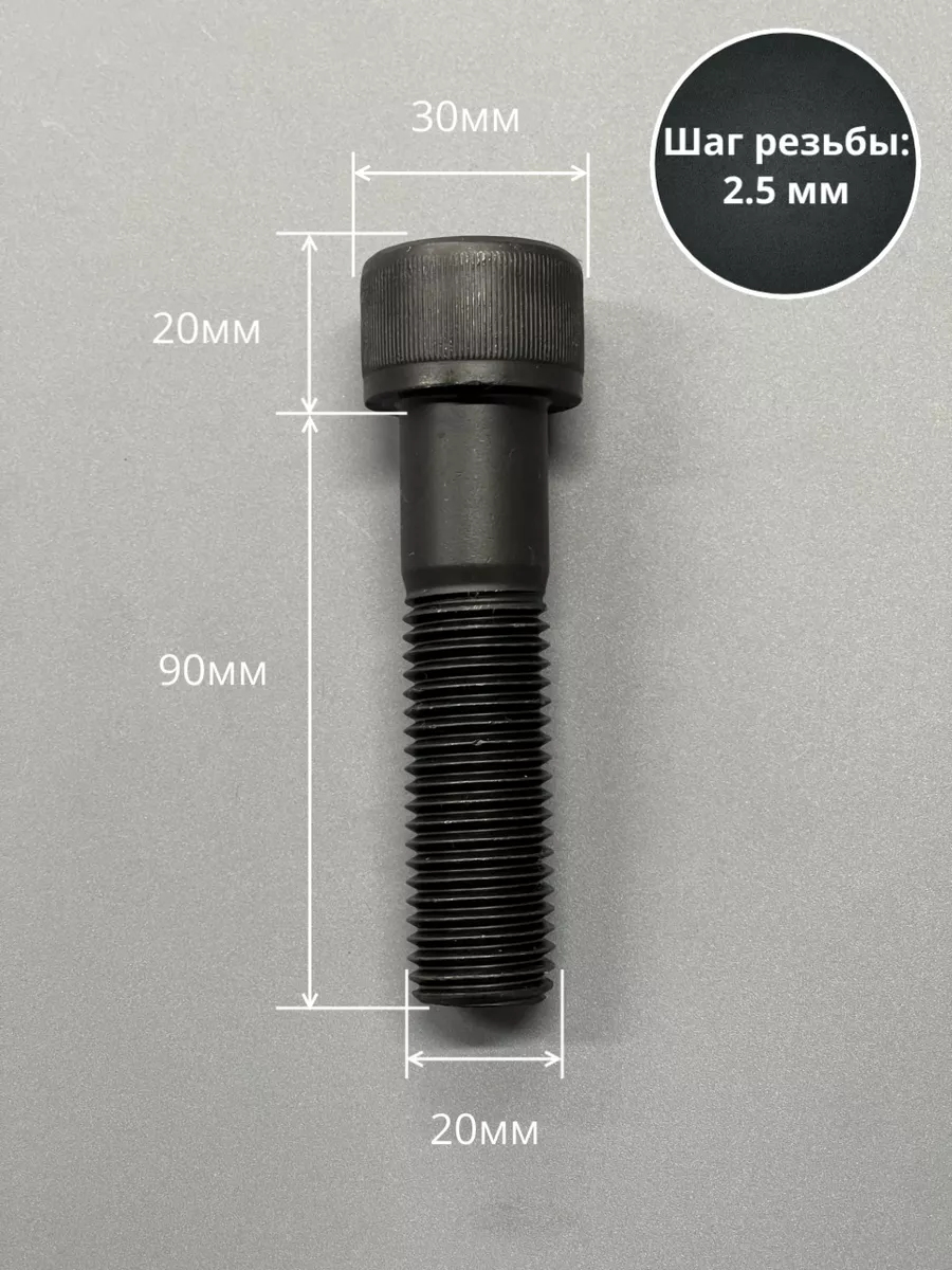 Винт высокопрочный НР М20х90 мм к.п.12.9 черный DIN912, 2 шт.