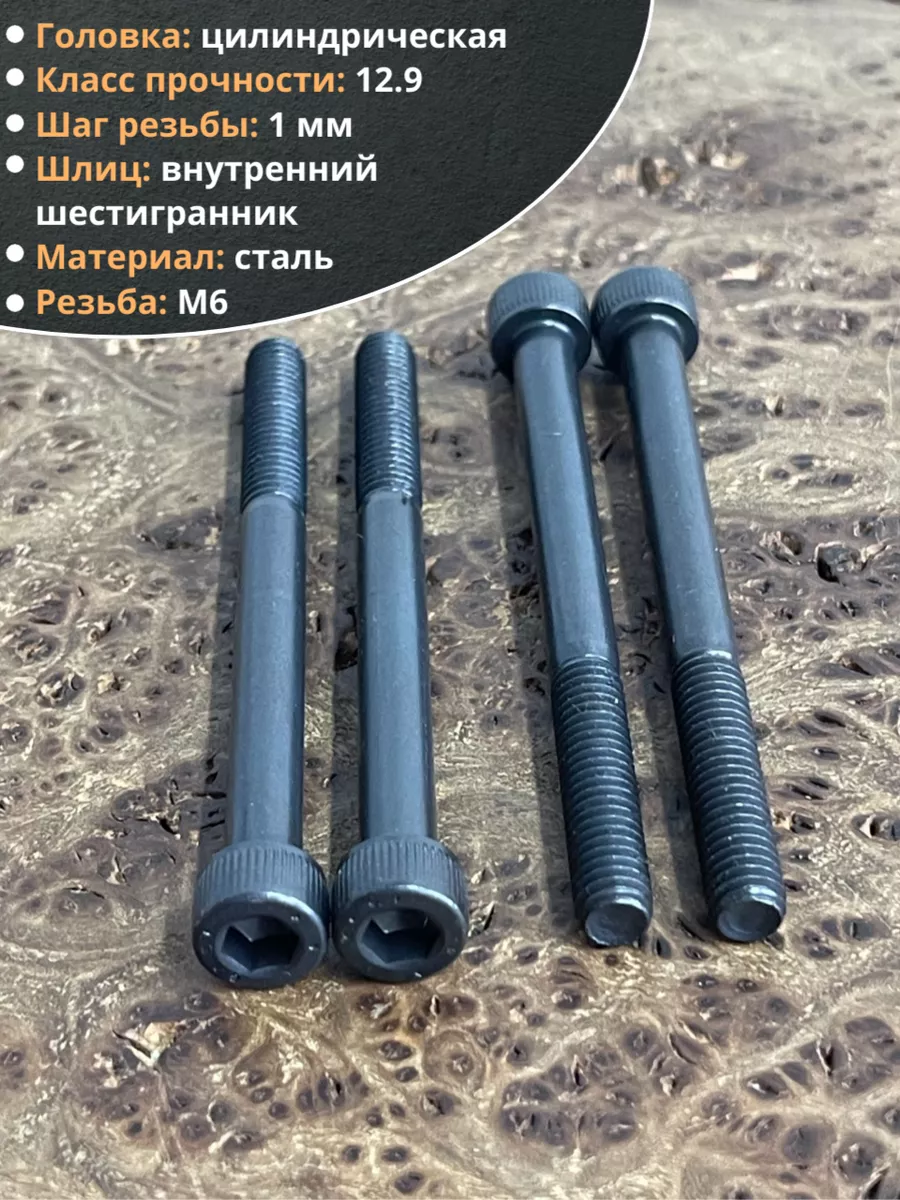 Винт высокопрочный НР М6х90 мм к.п.12.9 черный DIN912, 10 шт.