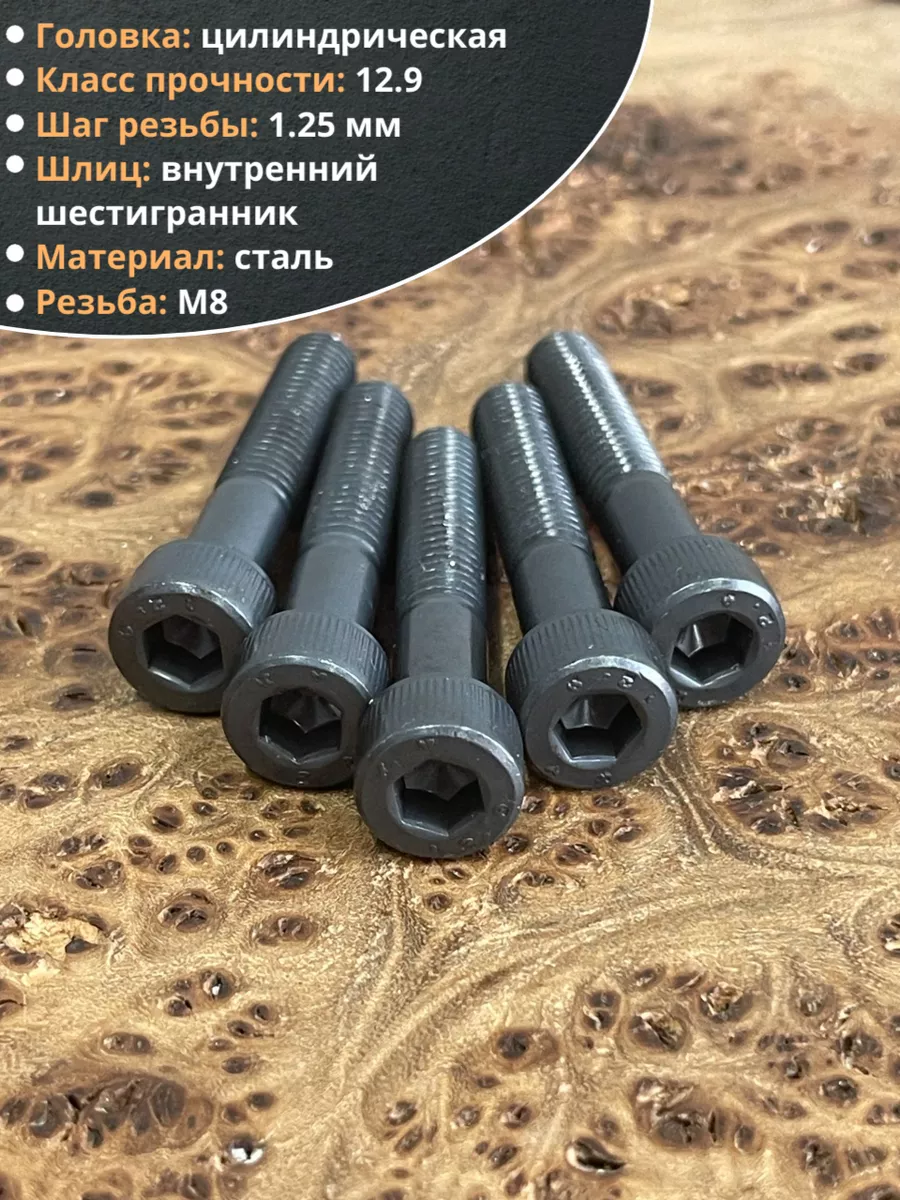 Винт высокопрочный НР М8х40 мм к.п.12.9 черный DIN912, 10 шт.