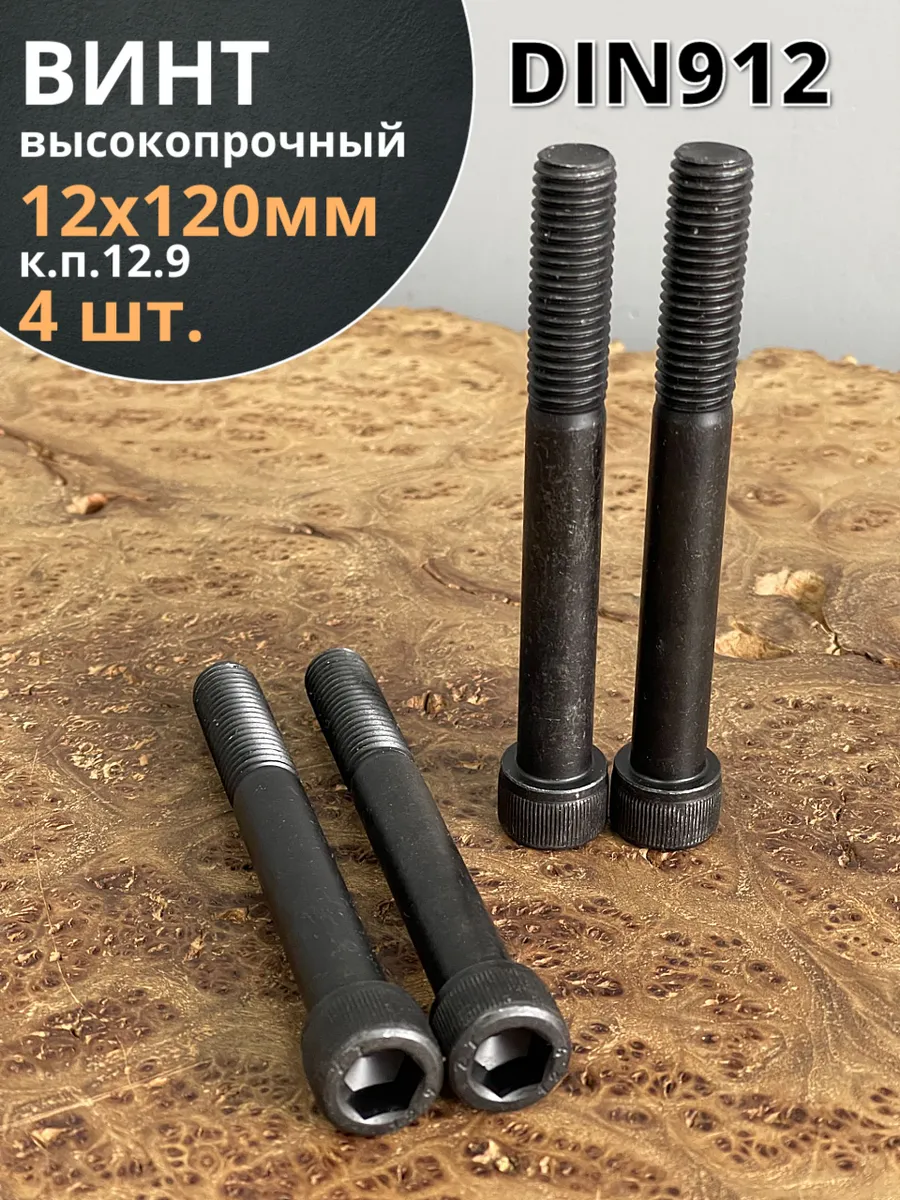 Винт высокопрочный НР М12х120 мм к.п.12.9 черный DIN912, 4 шт.