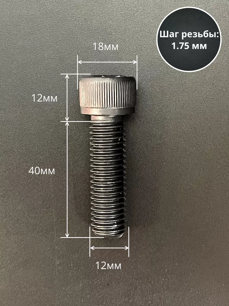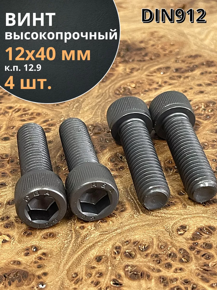 Винт высокопрочный ПР М12х40 мм к.п.12.9 черный DIN912, 4 шт.
