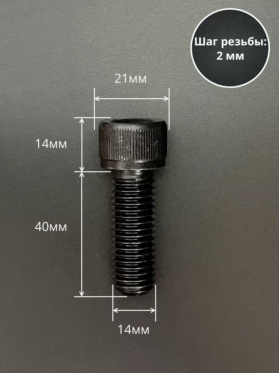 Винт высокопрочный ПР М14х40 мм к.п.12.9 черный DIN912, 4 шт.