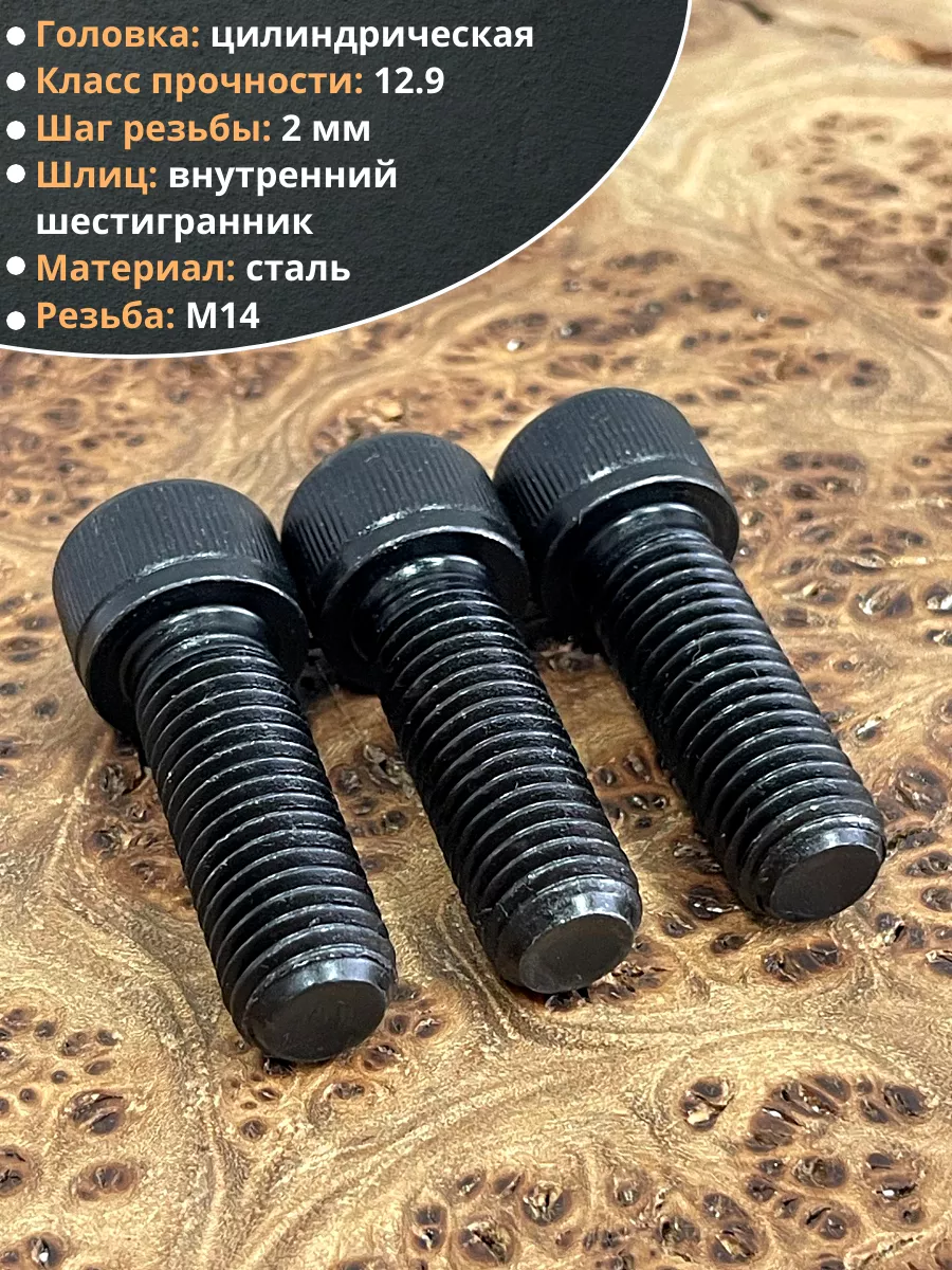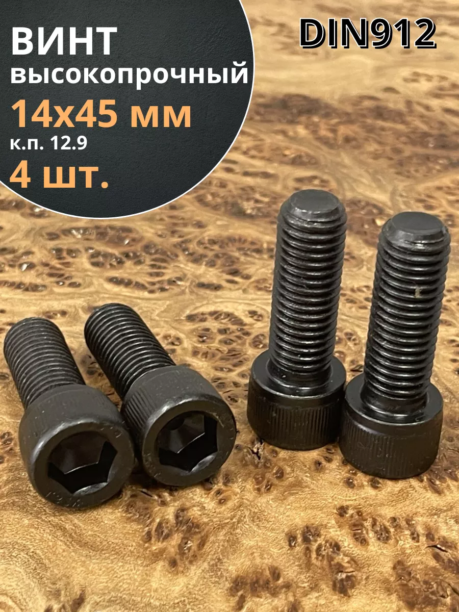 Винт высокопрочный ПР М14х45 мм к.п.12.9 черный DIN912, 4 шт.