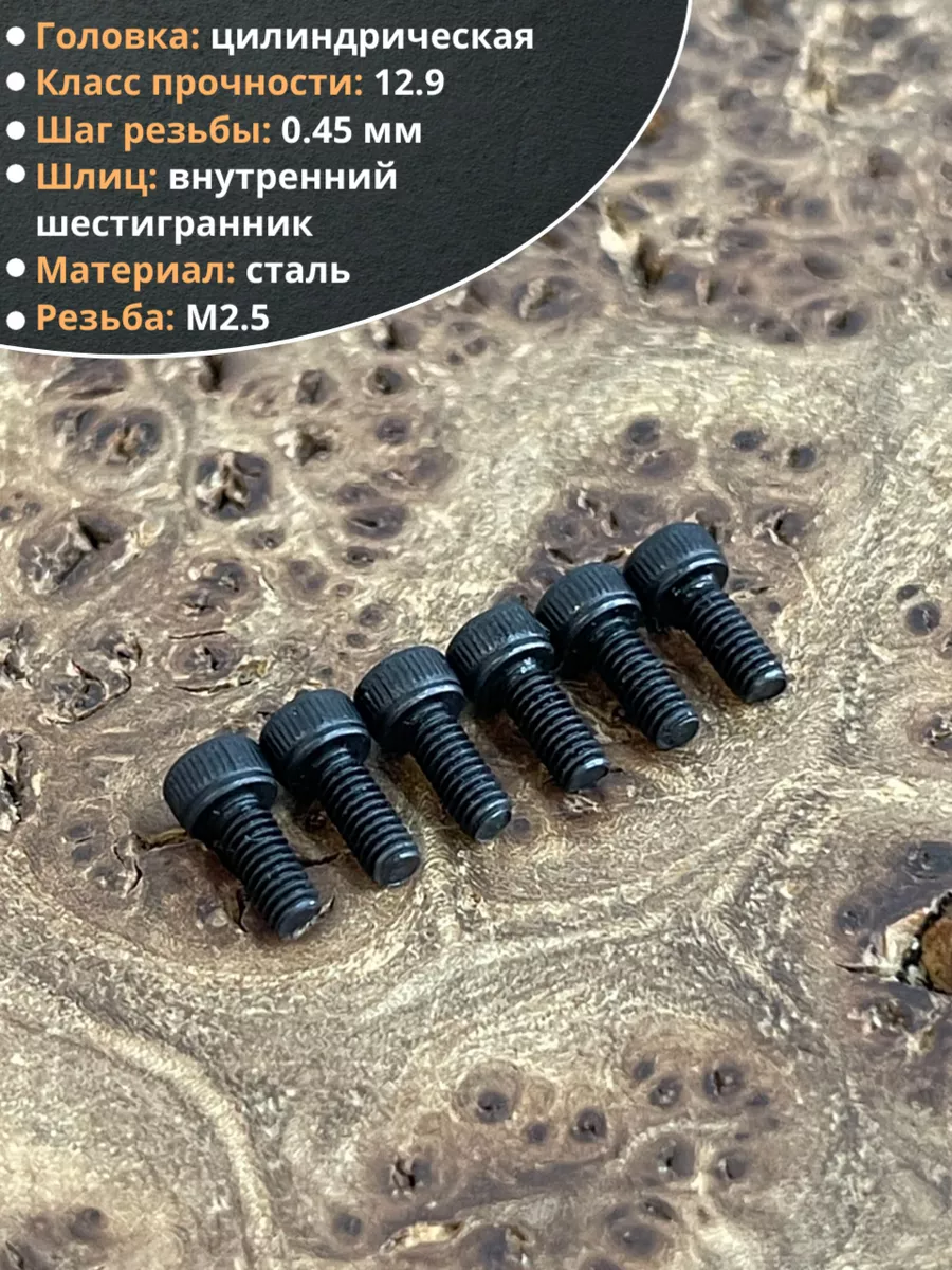Винт высокопрочный ПР М2,5х6 мм к.п.12.9 черный DIN912, 20 шт.