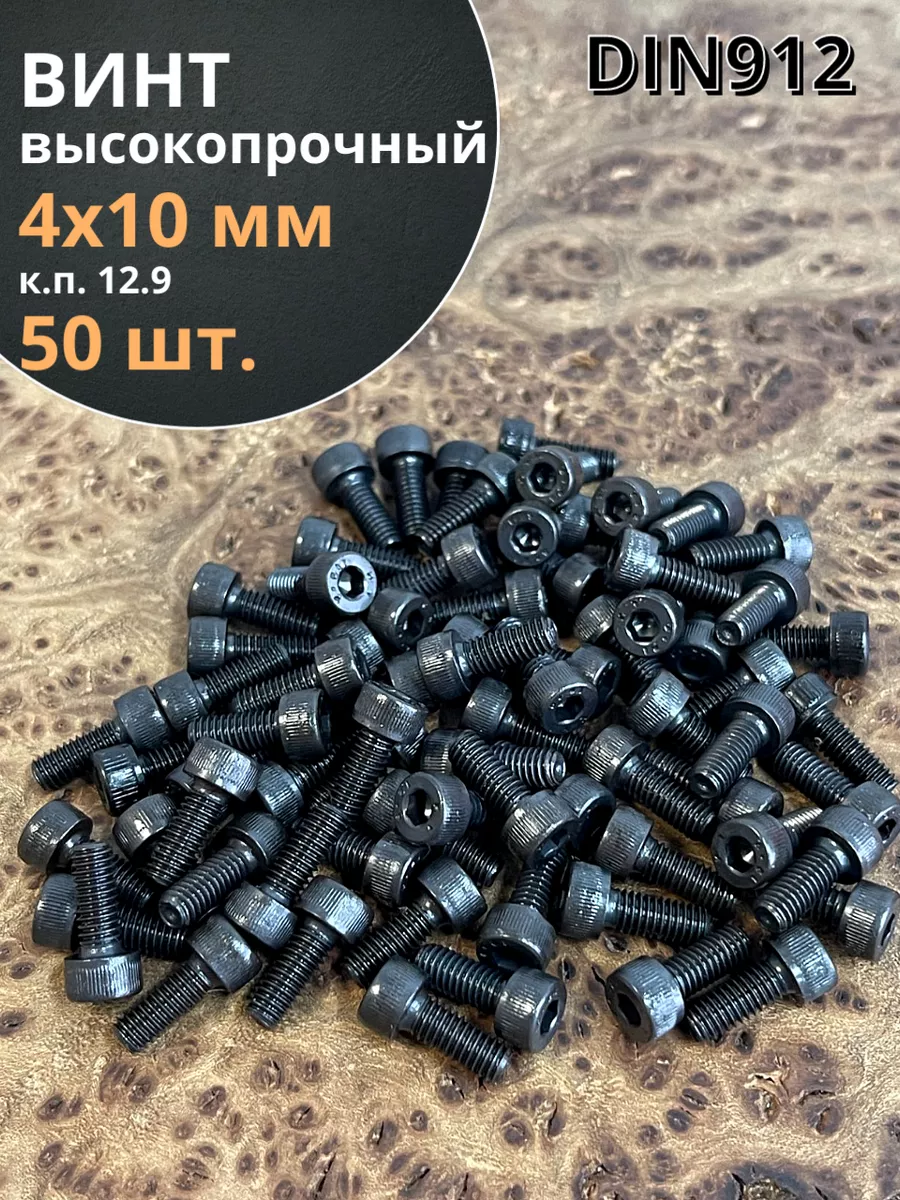 Винт высокопрочный ПР М4х10 мм к.п.12.9 черный DIN912, 50 шт.