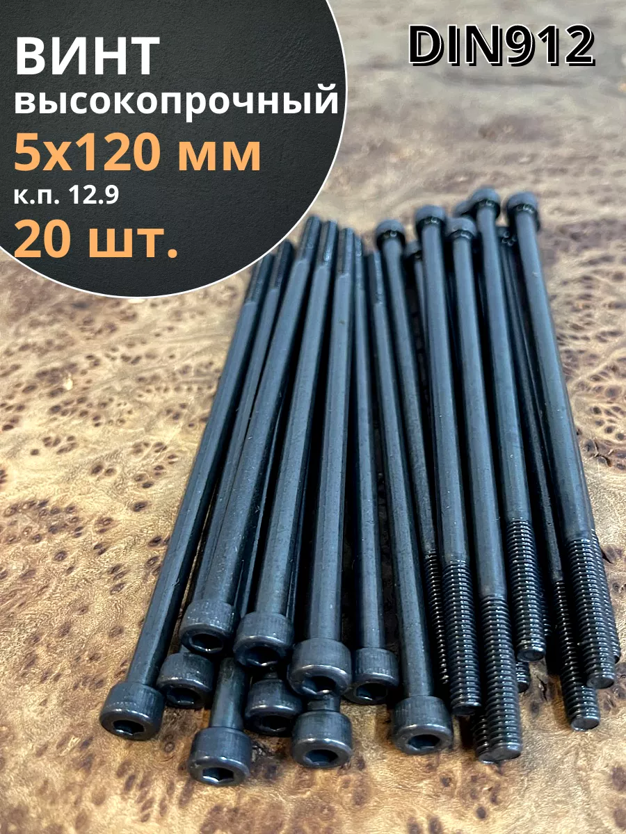 Винт высокопрочный НР М5х120 мм к.п.12.9 черный DIN912, 20 шт.