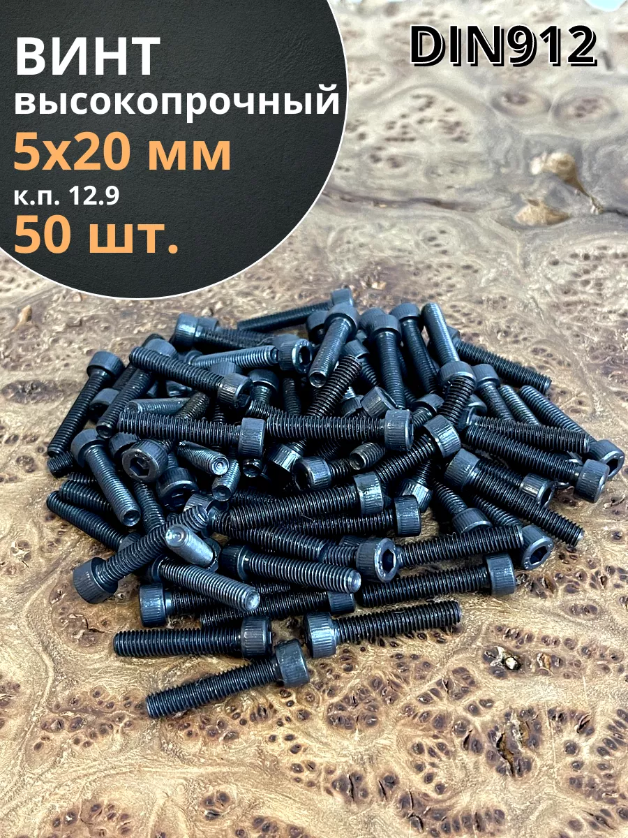 Винт высокопрочный ПР М5х20 мм к.п.12.9 черный DIN912, 50 шт.