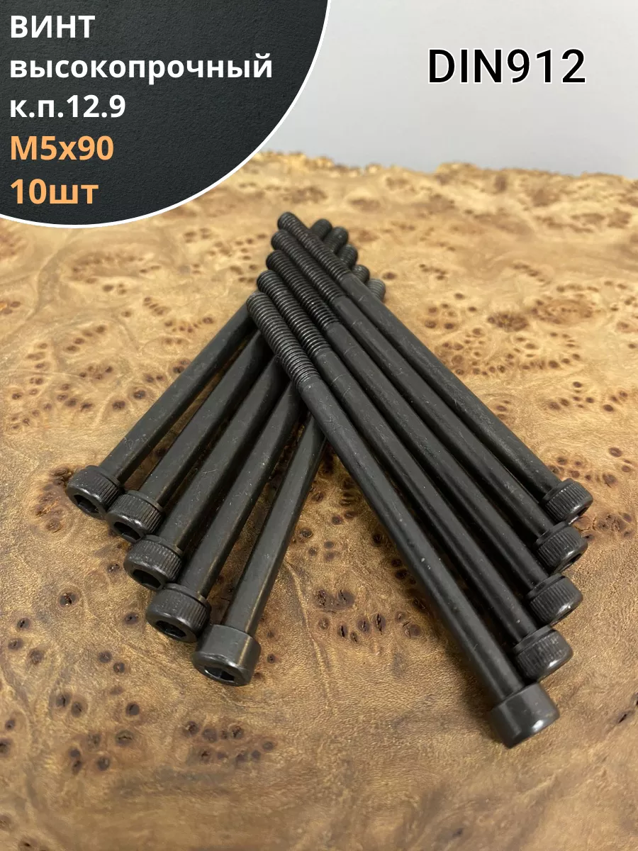 Винт высокопрочный НР М5х90 мм к.п.12.9 черный DIN912, 10 шт.