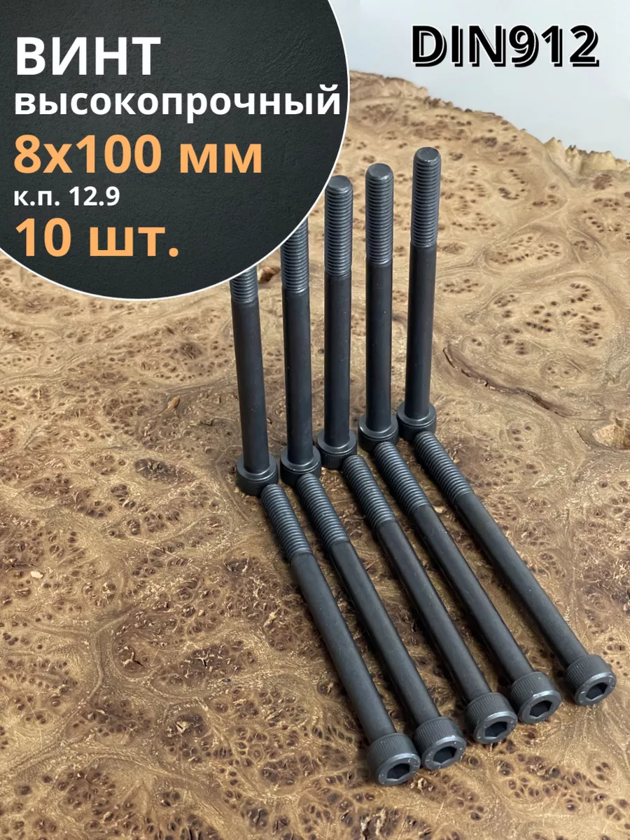 Винт высокопрочный НР М8х100 мм к.п.12.9 черный DIN912, 10 шт.