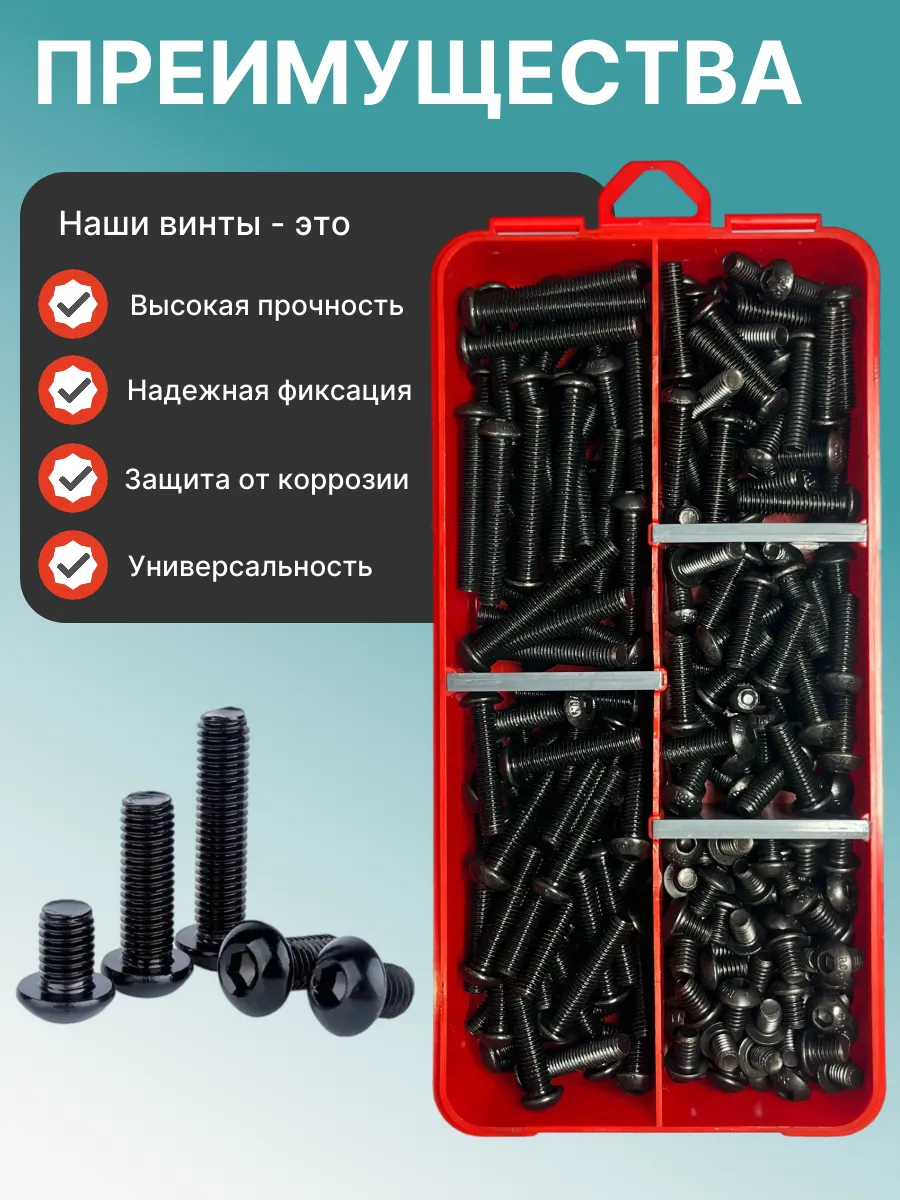 Винты чёрные М6 DIN7380 к.п.10.9 в органайзере НАБОР 1