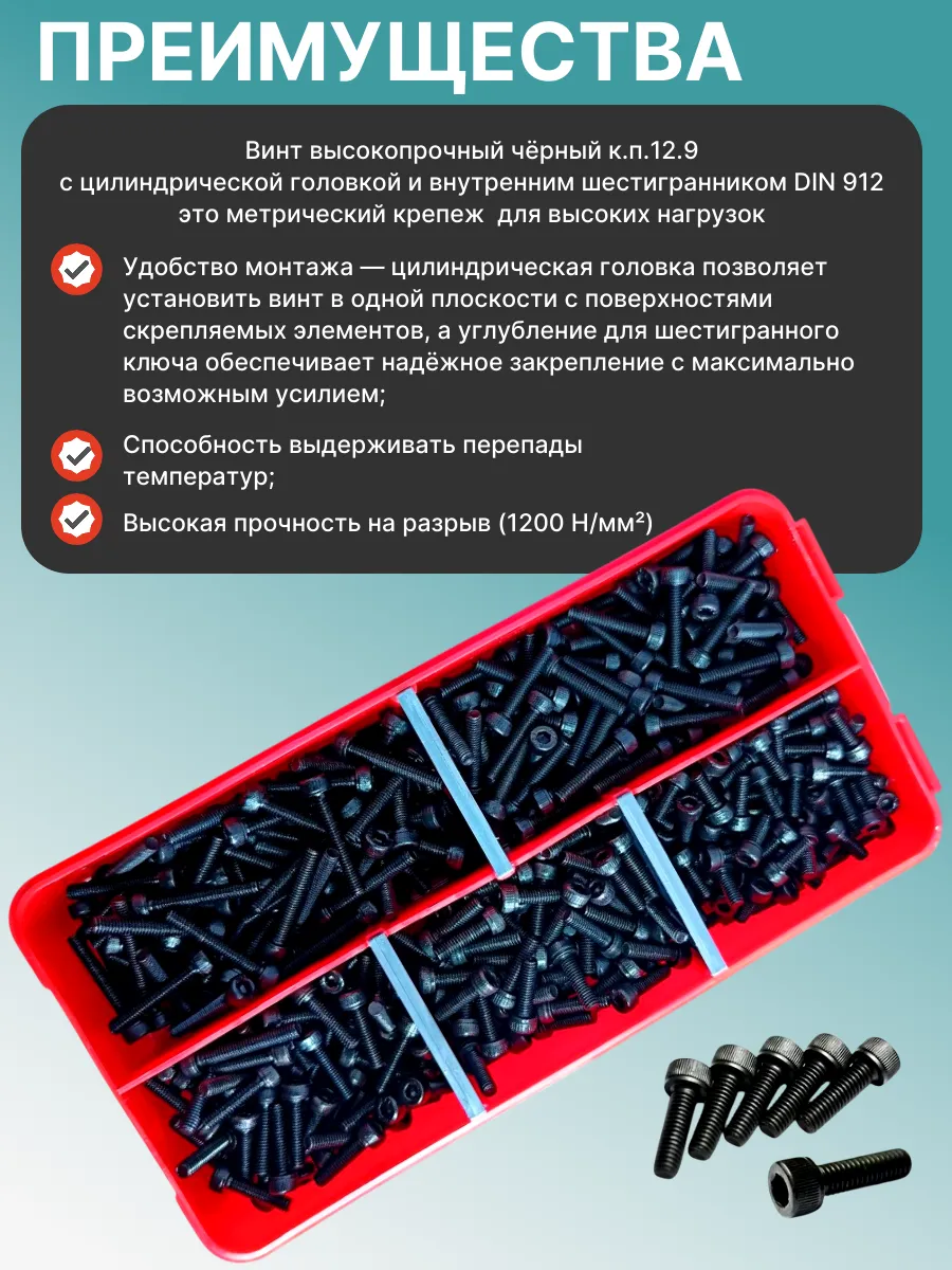 Винты М4 черные к.п.12.9 DIN912 в органайзере НАБОР 1
