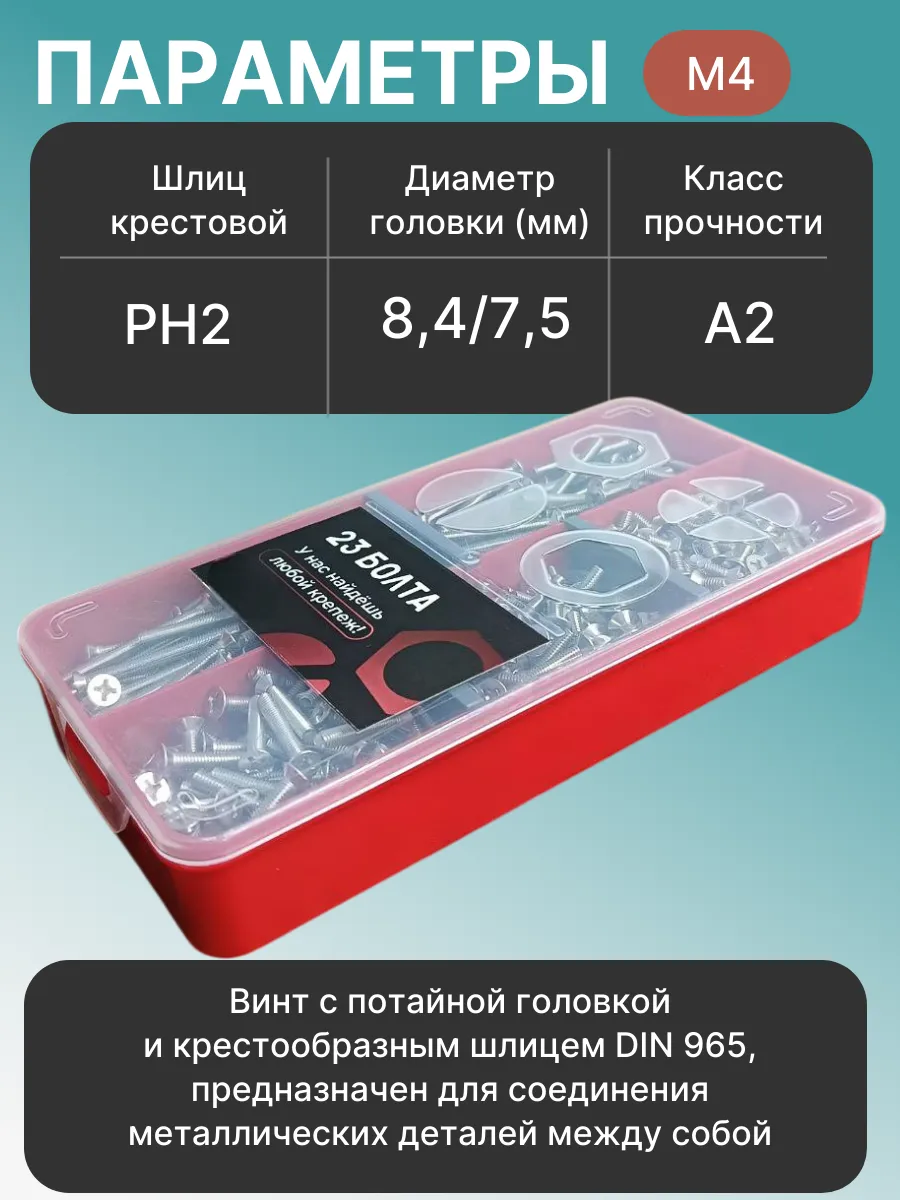 Винты нержавеющие М4 DIN 965 PH в органайзере НАБОР 3