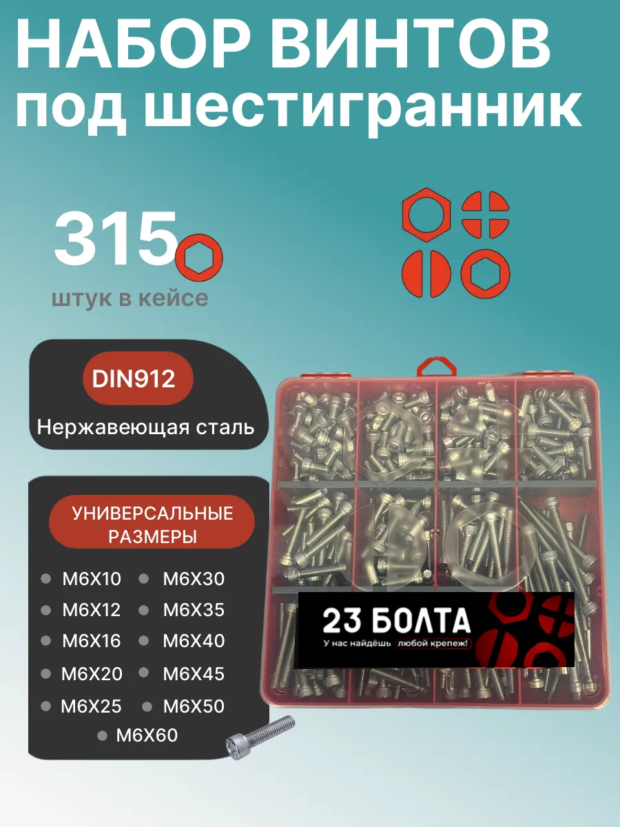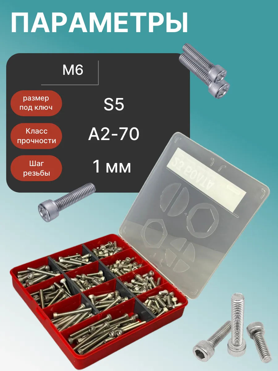 Винты нержавеющие М6 DIN912 в органайзере НАБОР 2