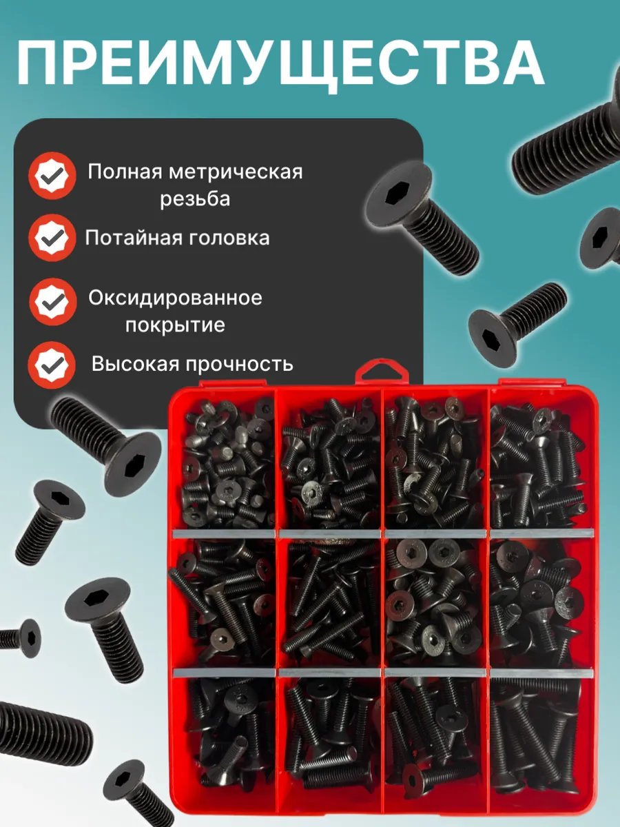 Винты потай М6 и М8 черные к.п.10.9 DIN7991 органайзер НАБОР 8