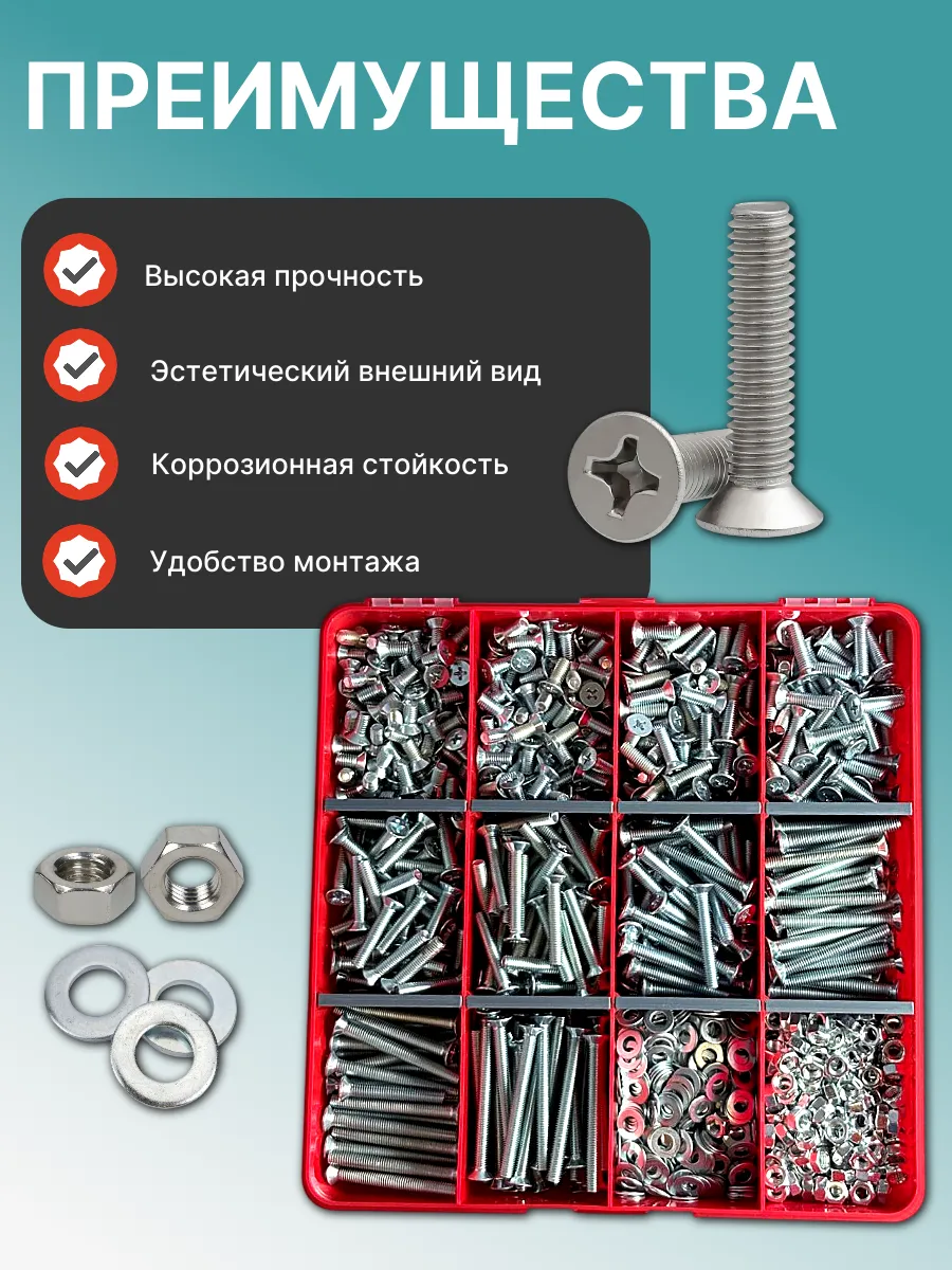 Винты потай ОЦ М5 DIN965 с гайкой,шайбой органайзер НАБОР2