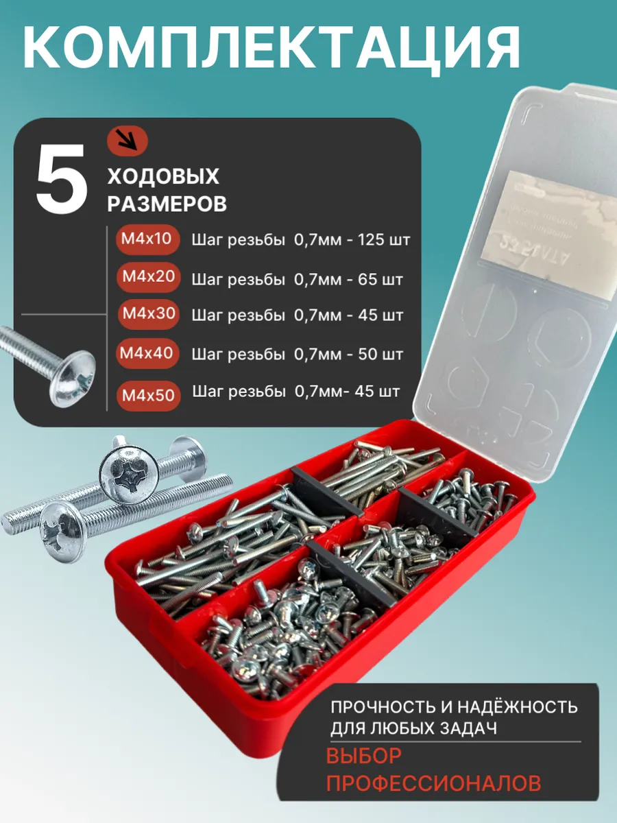 Винты с прессшайбой М4 мебельные DIN967 органайзер НАБОР 5