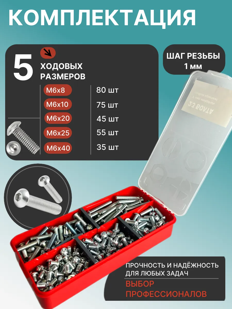 Винты с шестигранником М6 ОЦ 7380 к.п.10.9 органайзер НАБОР1
