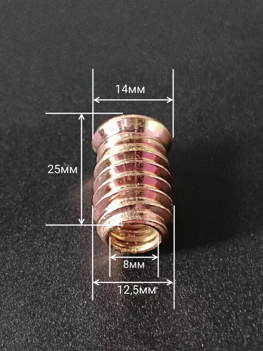 Втулка резьбовая М8х12,5х25 с потайным фланцем ЖЦ, 10 шт.
