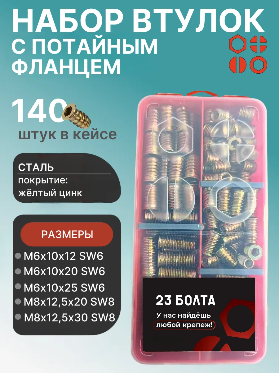 Втулки с потайным фланцем М6,М8 в органайзере НАБОР 1