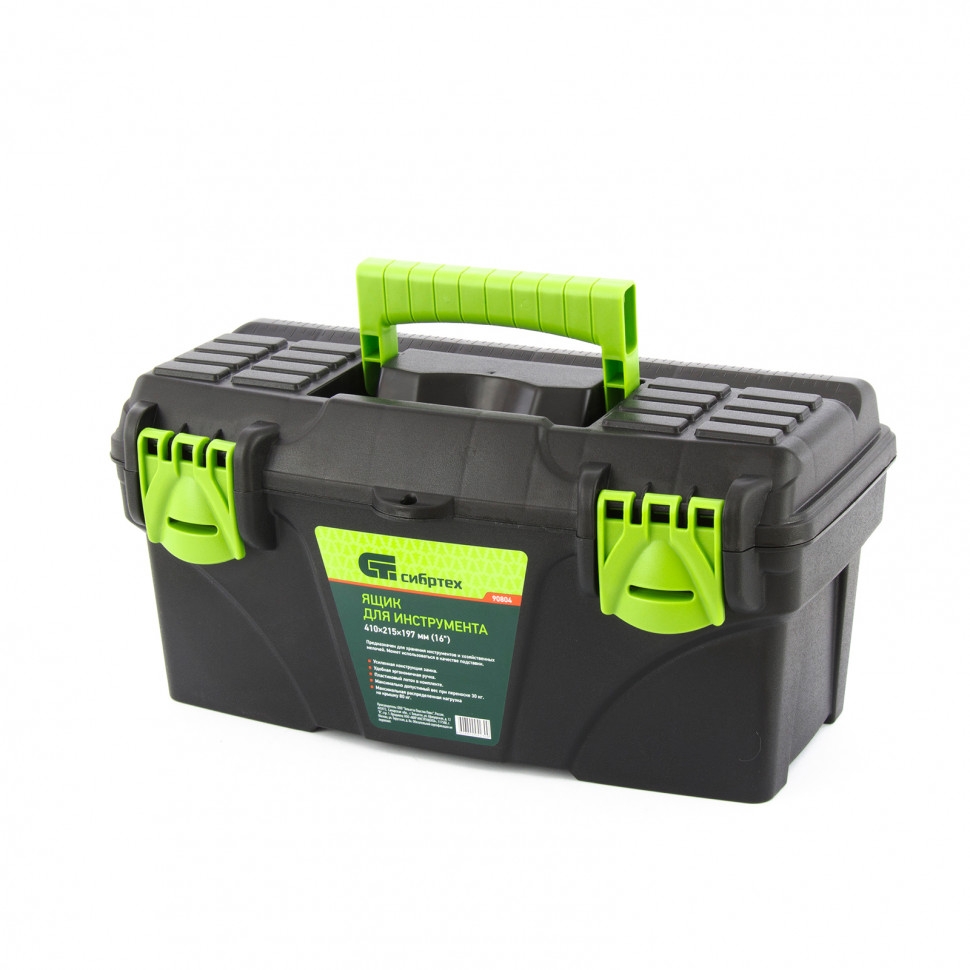 Ящик для инструмента Сибртех 90805 из пластика, 18 дюймов, 430 х 235 х 250 мм, — удобное вместилище для инструментов, бытовых мелочей, рыболовных снастей. На крышку нанесена измерительная шкала в сантиметрах и дюймах, поэтому можно проводить измерения, даже если под рукой нет линейки. Ящик пригодится в поездке, на рыбалке, а также дома, на даче или в гараже. Трехрядные петли усиливают конструкцию замка и верхней крышки, поэтому в ящик можно положить много инструментов.