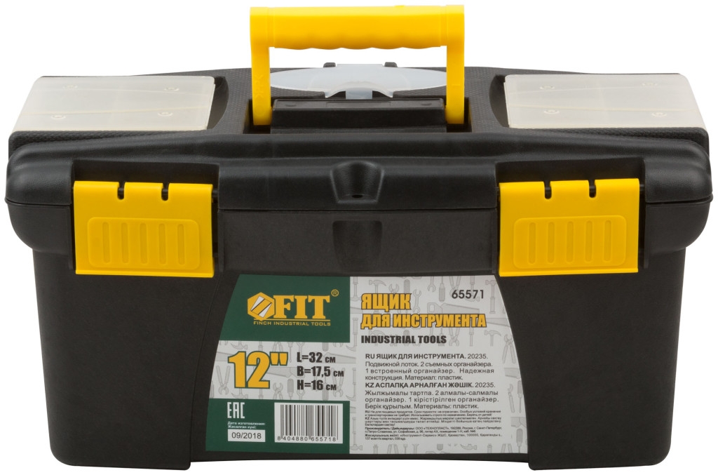 Ящик FIT 65571 предназначен для хранения и удобной транспортировки инструментов. Изготовлен из качественного, экологически безопасного пластика. Подвижный лоток и два съемных органайзера на крышке позволяют разместить необходимые инструменты и аксессуары. Ящик надежно закрывается с помощью защелок. Усиленная рукоятка обеспечивает комфортную переноску. Инструментальный ящик применяется как в профессиональной сфере, так и в быту: он очень вместительный, помогает упорядочить нужные в работе предметы и всегда держать их под рукой.