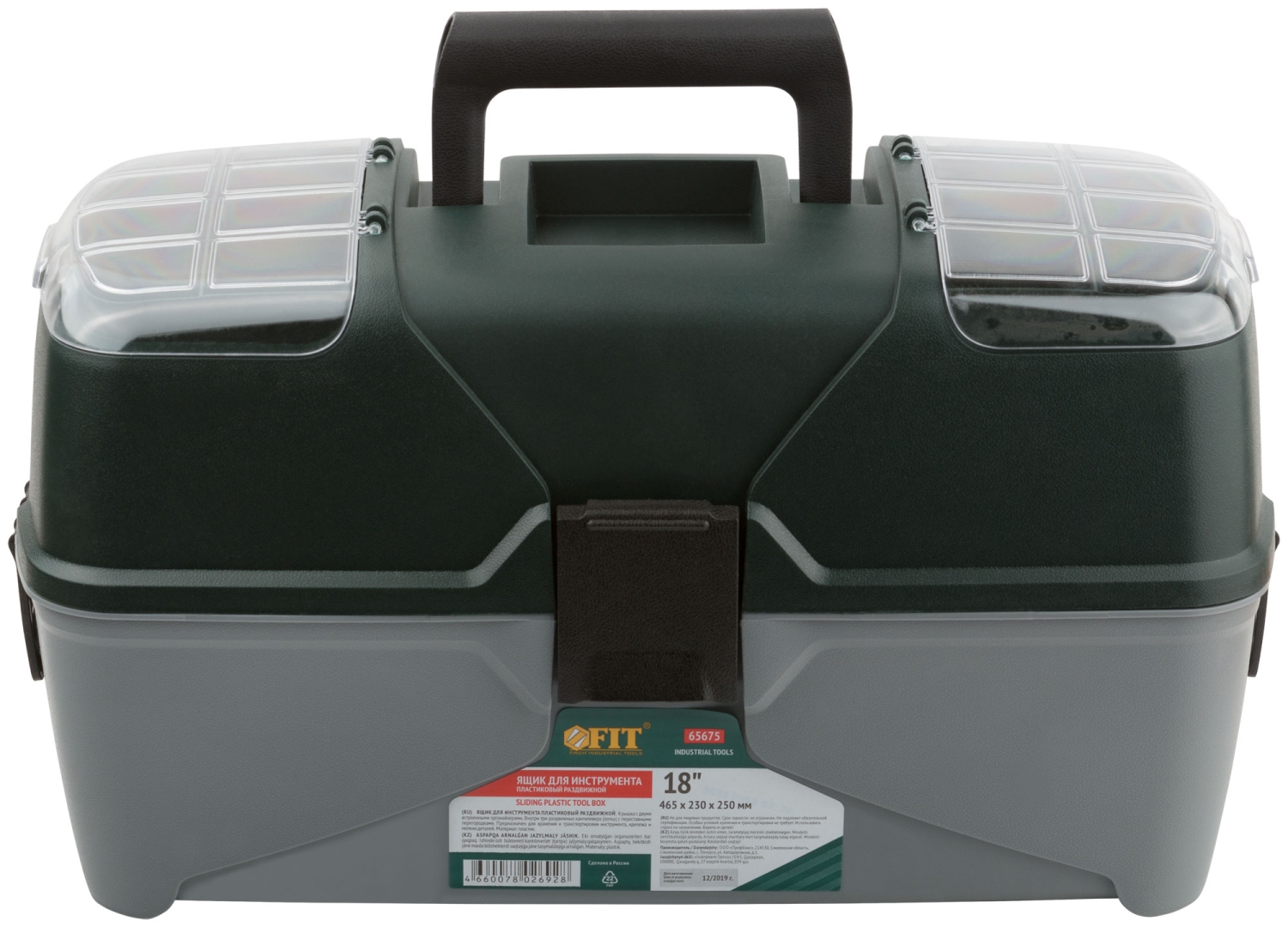 Ящик FIT 65675 для инструмента раздвижной с 3-мя кантилеверами отделениями 18'' (465х230х250 мм)