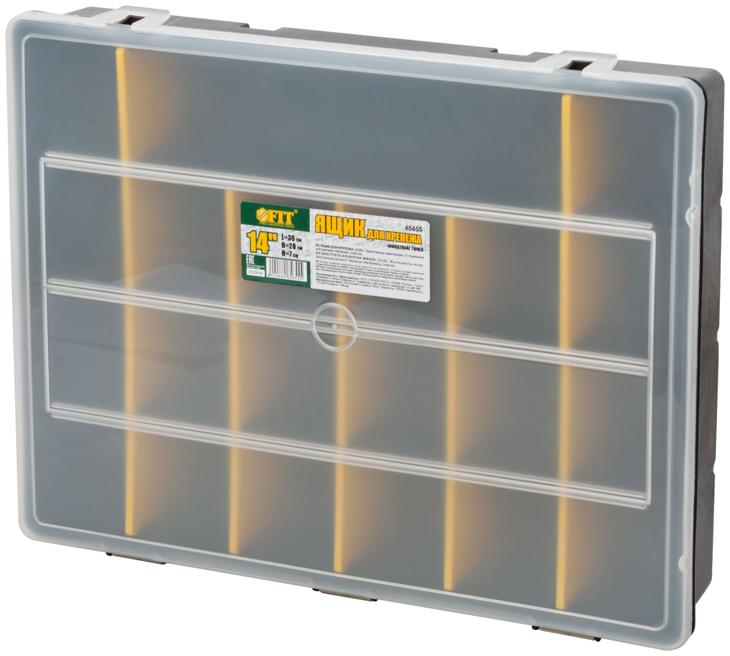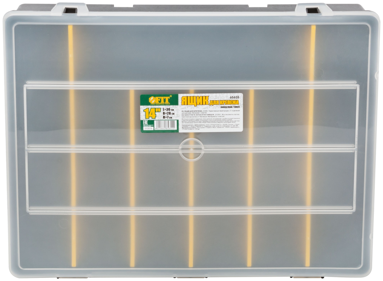 Пластиковый. Переставные перегородки. 21 отделение для крепежа.