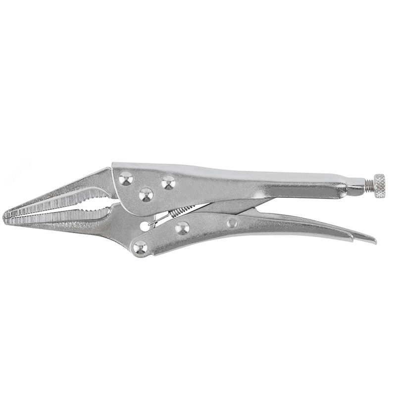 Зажим ручной FIT IT с зауженными длинными губками предназначен для монтажных работ в ограниченном пространстве. Позволяет зафиксировать усилие на предмете. Зажим изготовлен из инструментальной стали с никелевым покрытием, которое повышает коррозионную стойкость материала. Рабочие губки имеют противоскользящую ребристую поверхность.