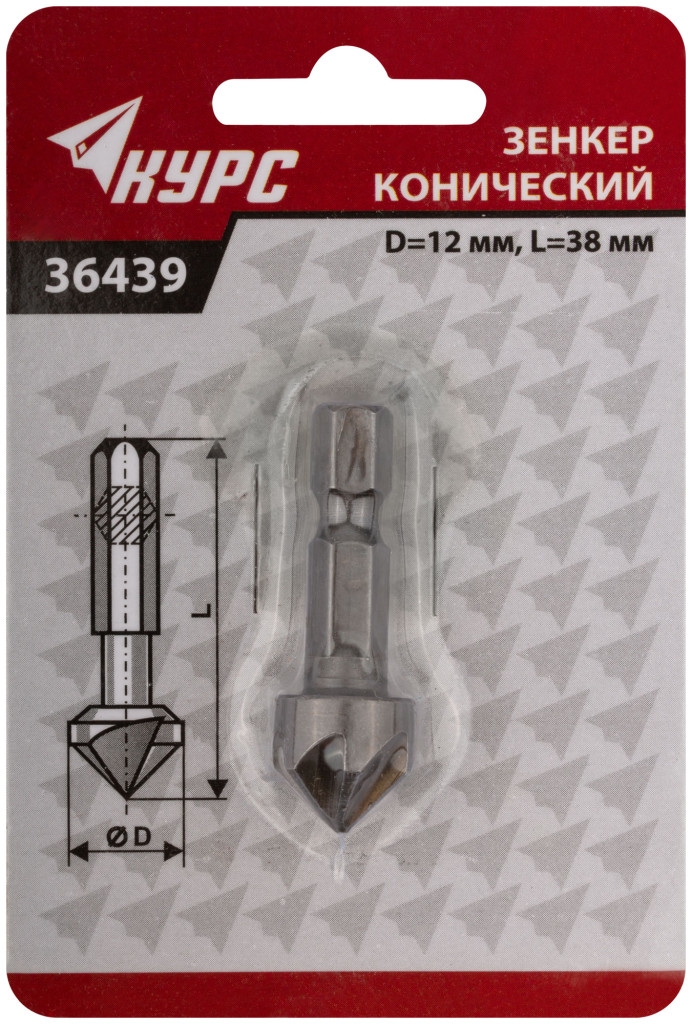 Зенкер конический, хвостовик под биту, 12 мм 36439 1 шт.