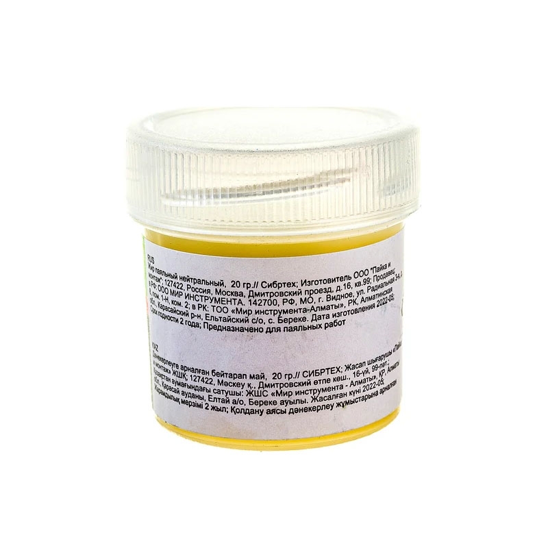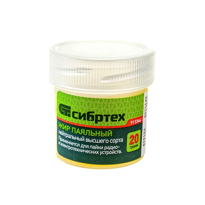 Жир паяльный нейтральный 20 гр. Сибртех применяется для пайки радио- и электротехнических устройств. Хорошо держится на металлических контактах, обеспечивая точное дозирование и высокую скорость нанесения на большое количество мест паек. Не требует удаления остатков после пайки. Масса — 20 гр.